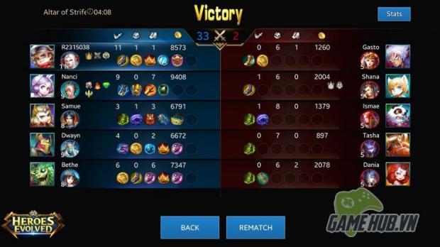 Như đã nói, Heroes Evolved ném game thủ vào những trận đấu cực kỳ nảy lửa giữa 10 Hero khác nhau. Với thể thức 5 đấu 5 cùng bản đồ chuẩn ba Lane, Heroes Evolved tạo nên những màn combat cực kỳ nóng bỏng và đầy màu sắc trên màn hình. Không nhưng vậy hệ thống Heroes của game cũng khá đồ sộ với hơn 25 tên tuổi khác nhau được lấy ra từ nhiều nền văn hóa. Những bá tước Dracula, Cleopatra hay Quan Vũ chỉ là một vài ví dụ tiêu biểu cho sự đa dạng của Heroes Evolved.