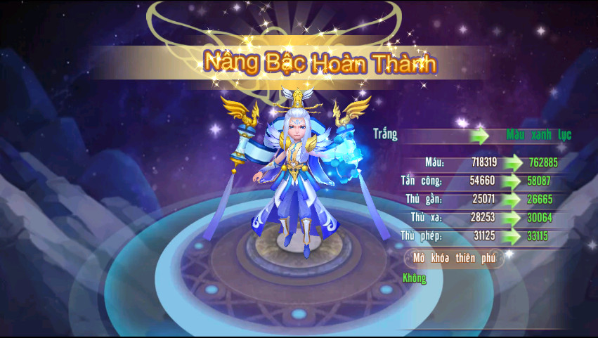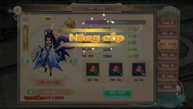 3.Nâng Bậc: Khi nâng bậc thì lực chiến của mỗi tướng cũng tăng thêm đáng kể. Nâng bậc Lam trở lên sẽ mở thiên phú cho vị tướng đó.