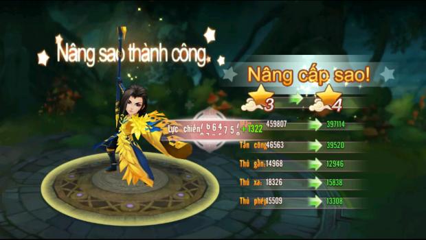 4.Thăng sao: Khi một tướng được thăng sao, các chỉ số thuộc tính của vị tướng này cũng tăng lên đáng kể. Đây là lí do của việc 2 tướng giống nhau, tướng nào có nhiều sao hơn sẽ mạnh hơn. Mỗi tướng sở hữu tối đa 4-5 Sao . Điều kiện để Thăng Sao là có đủ hồn tướng đó.