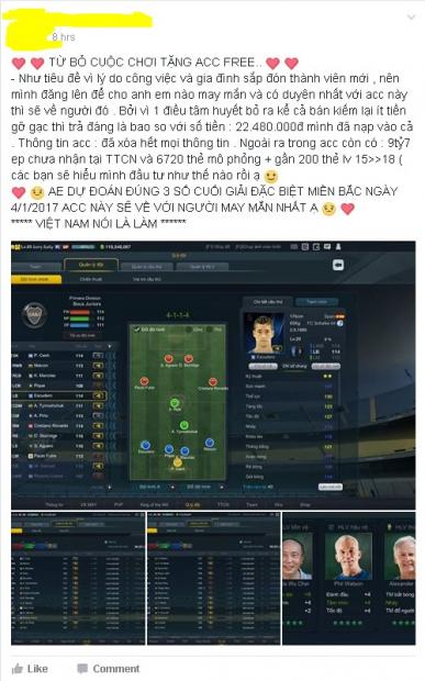Mới đây theo chúng tôi được biết, một game thủ Việt - người đã bỏ rất nhiều công sức và đặc biệt là số tiền không nhỏ - hơn 22 triệu đồng để có được một tài khoản sở đội hình cầu thủ ưng ý. Ấy vậy mà vc, với lý do khá sốc: 'Tâm huyết bỏ ra, kể cả bán kiếm lại ít tiền gỡ gạc thì cũng chả đáng là bao so với số tiền : 22.480.000đ đã nạp vào'.