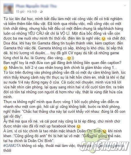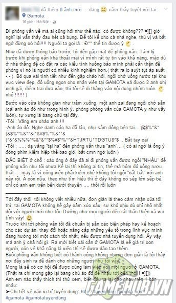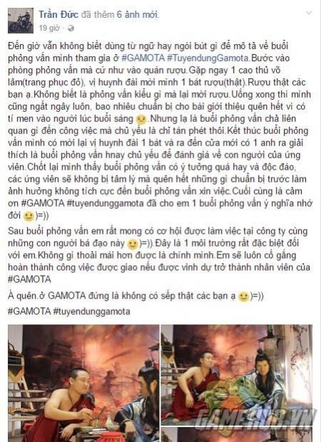 Chia sẻ trên mạng xã hội, nhiều bạn trẻ đã không giấu nổi cảm xúc bất ngờ và choáng ngợp cho đến tận bây giờ, trong đó, bạn Trần Đức có chia sẻ: “Đến giờ vẫn không biết dùng từ ngữ hay ngòi bút gì để mô tả về buổi phỏng vấn mình tham gia ở Gamota…” Vẫn giữ cảm giác lâng lâng khó tả, bạn Trần Bảo Ngọc có chia sẻ: “Kỳ lạ và hấp dẫn. Buổi phỏng vấn khá kỳ lạ khi những người phỏng vấn hoá trang trong trang phục game, xưng hô như các hảo hữu huynh đệ trong game, cùng thưởng rượu tâm sự điều này chắc có lẽ ít ai được tham gia phỏng vấn như vậy, nó gia tăng sự kích thích sự hiếu kỳ và thích thú với môi trường này hơn…”