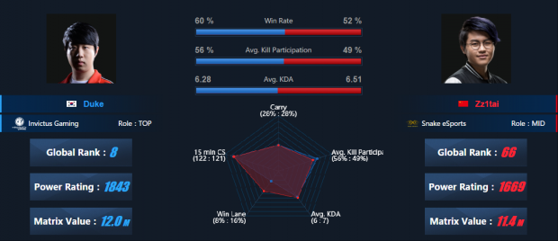 Như những thống kê đã được thể hiện ở phía trên, Duke đang trội hơn Zz1tai ở nhiều khía cạnh. Tóm lại, điểm mạnh của iG đang được cải thiện để đang được coi là một trong những kẻ thách thức đáng gờm tại LPL Mùa Xuân 2017.