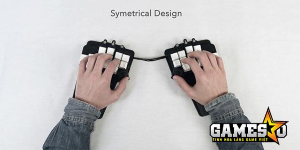 Bộ bàn phím không đi theo lối thiết kế dạng truyền thống, với 14 phím bấm ở mỗi bên và một bộ điều khiển bằng ngón tay cái trên hai miếng mút nhỏ riêng biệt.