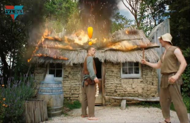 Chắc chắn rất nhiều game thủ sẽ nhận ra sự quen thuộc này trong bất kỳ tựa game nào có liên quan tới phá nhà, đó là nhân vật chém vào gây ra... cháy công trình rồi nổ bùm. Việc sửa chữa thậm chí còn khó hiểu hơn là đập búa vào để dập lửa?