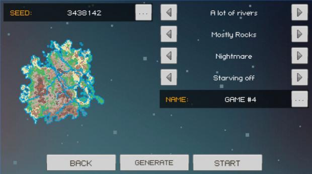 Khi mới bắt đầu, PixelTerra cho phép người chơi tùy chỉnh mức độ khó hay bối cảnh trên thế giới như việc thêm hoặc bớt số sông suối cản trở việc đi lạm, tăng thời gian ngày đêm dài gấp 2 lần bình thường... Điều đáng tiếc nhất mà trò chơi đã thiếu đi là một cốt truyện xuyên suốt để người chơi dễ dàng đi theo và chinh phục.