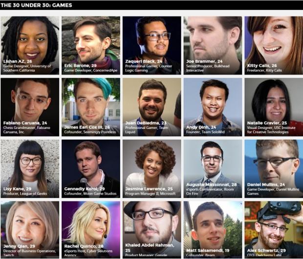 Ngoài Andy Dinh, Top 30 under 30 năm 2017 lĩnh vực game của tạp chí Forbes năm nay còn gọi tên một số gương mặt đình đám như Zaqueri Black (24 tuổi, game thủ chuyên nghiệp), Lishan AZ (26 tuổi, nhà thiết kế game), Eric Barone (29 tuổi, nhà phát triển game)...
