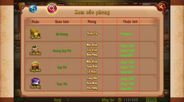 - Top 3 thứ hạng trong 1 cấp quan phẩm sẽ được thêm “Sắc Phong”, Sắc phong không chỉ là biểu tượng vinh dự mà còn tăng lực chiến cho người chơi.