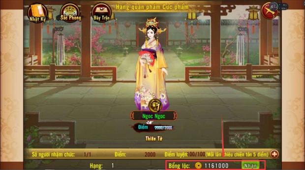 - Muốn lên thứ hạng thì phải “Khiêu Chiến” với người khác có cùng cấp quan. Cùng 1 cấp quan với nhau, thứ hạng càng cao thì bổng lộc nhận được sẽ càng nhiều.