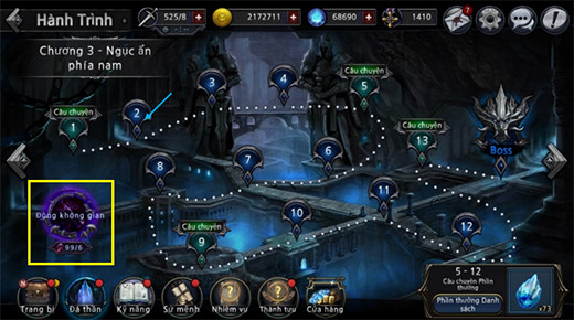 + Động Không Gian nằm rải rác ở các chương của Hành Trình. Bạn có thể tìm ra nó như hình dưới. Hãy nhấn vào nó để xâm nhập.