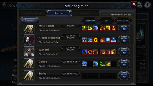 + Khi xâm nhập bạn có thể mời chọn đồng minh (NPC - Người chơi tự động) để cùng tham chiến: