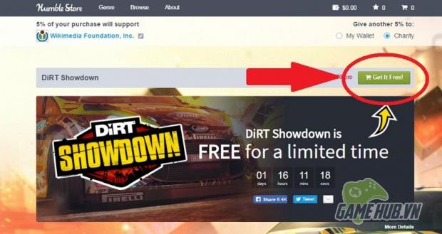 Nay tất cả những giá trị tuyệt vời ấy của Dirt Showdown sẽ được tái hiện khi tựa game vừa chính thức tặng miễn phí bản quyền, cho game thủ có thể nhận game ngay từ bây giờ. Tất cả những gì bạn cần làm là truy cập vào địa chỉ: https://www.humblebundle.com/store/dirt-showdown-free-game và ấn vào nút 'Get it Free'.