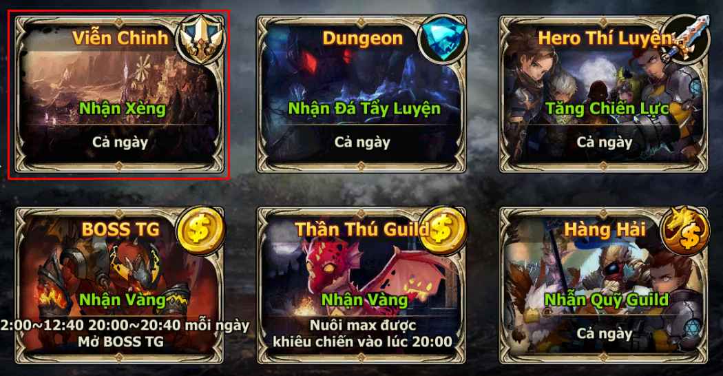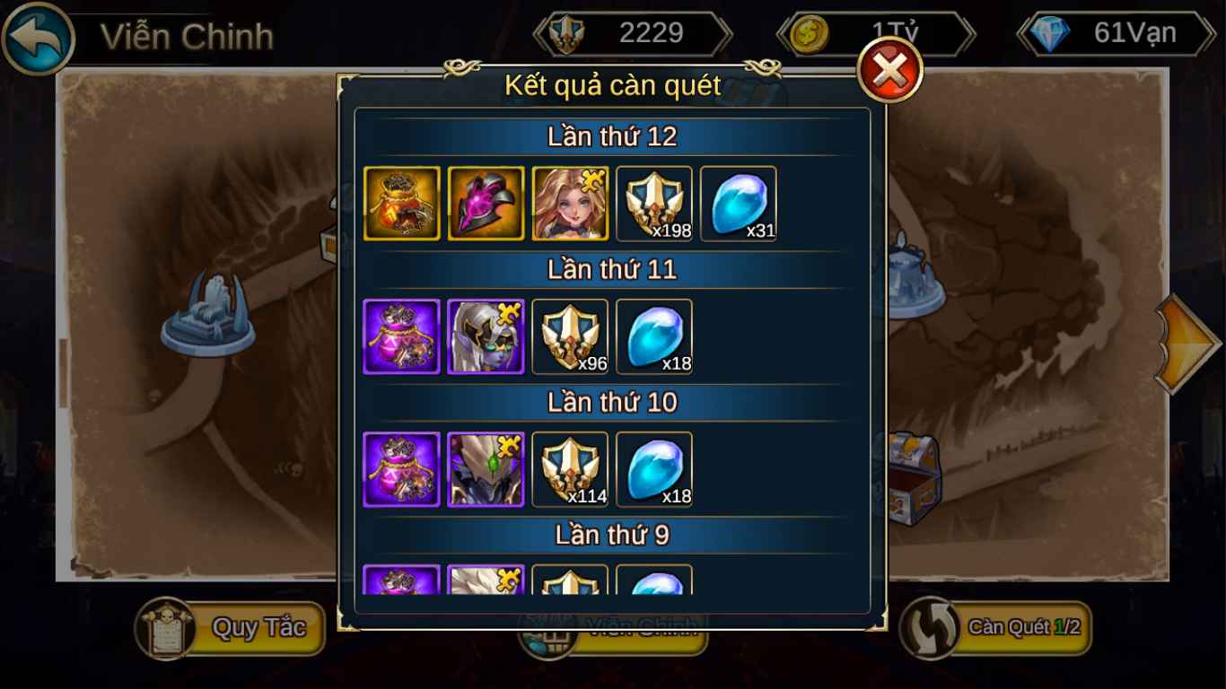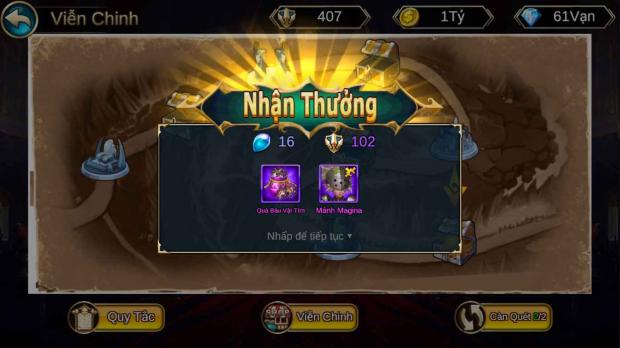 - Viễn chinh có tổng cộng 12 ải. Khiêu chiến thành công được nhận thưởng.