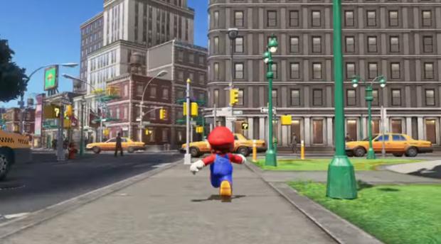 Được thiết kế theo phong cách đồ họa 3D, ấn tượng đầu tiên mà người xem cảm nhận được về Super Mario Odyssey là giống với... GTA khi Mario đã rời khỏi vương quốc Nấm thần tiên để đến với bối cảnh thành phố hiện đại. Ngay ở trường đoạn đầu tiên, gã thợ sửa ống nước đã thể hiện bản năng phá phách khi dẫm lên nóc taxi, đánh đu trên cột đèn chẳng kém gì so với dàn nhân vật của Rockstar.