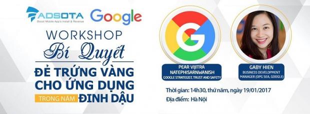 Tất cả những câu hỏi trên sẽ được trả lời tại Workshop “BÍ QUYẾT ĐẺ TRỨNG VÀNG CHO ỨNG DỤNG TRONG NĂM ĐINH DẬU” do ADSOTA – Đối tác chiến lược của Google tại Việt Nam về mảng quảng cáo di động, phối hợp cùng đại diện Google tổ chức vào ngày 19.1.2017.