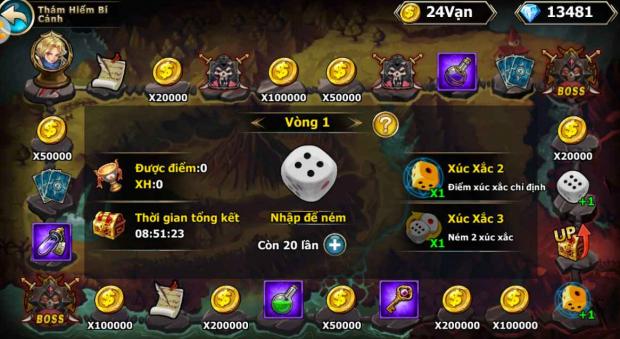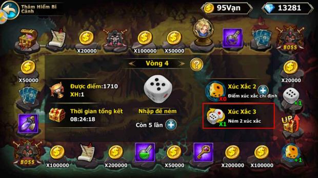 - Khi ném Xúc Xắc, nhân vật sẽ tự di chuyển dựa trên số điểm quay được. Di chuyển đến ô nào sẽ nhận phần thưởng ở ô đó