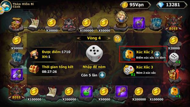 - Có thể dùng Kim Cương mua thêm lượt quay Xúc Xắc. Số lượt quay khi qua ngày mới sẽ tự làm mới và không cộng dồn.