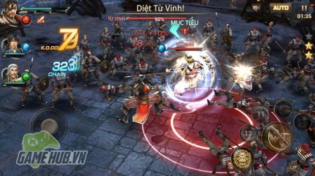 Mang phần nào dòng máu của Dynasty Warriors từng làm mưa làm gió trên PC/Console, phiên bản Mobile cũng thể hiện bầu không khí chiến trường cực kỳ quy mô. Ở đó game thủ luôn bị vây hãm bởi hàng hàng lũ lũ kẻ địch với mỗi đường gươm lưỡi kiếm sẵn sàng liếm qua cả chục thân xác địch. Hình ảnh kích hoạt siêu kỹ năng và chứng kiến tất thảy quân địch hất tung lên không trung thực sự sẽ truyền ngọn lửa điên cuồng lên thái dương người chơi.