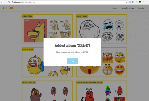 Bản chất của GIFUR chính là gởi một bức ảnh cho bạn bè nên không cần người bên kia phải cài sẵn GIFUR giống bạn. Và nếu để ý thì add on này còn có nhiều bộ sưu tập emotion khá vui, bạn có thể xem thêm coi có bộ nào hay nhé. Đồng thời, add on này còn hỗ trợ tự thêm bộ sưu tập Sticker vào. Bạn chỉ cần lọc ra một bộ ảnh sticker hoặc ảnh gì đó, tự vẽ cũng được, sau đó đăng ký tài khoản và đăng lên dịch vụ lưu trữ ảnh imgur, tiếp theo link vào trang bộ sưu tập của GIFUR là xong. Khá vui nhộn!