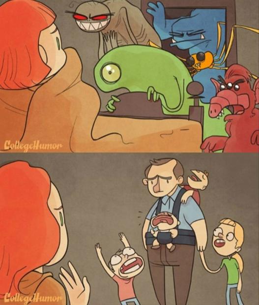 Trẻ em sợ nhất là những sinh vật có hình thù gớm ghiếc. Người lớn lại sợ nhất các 'quái vật tí hon'. Ảnh: CollegeHumor.