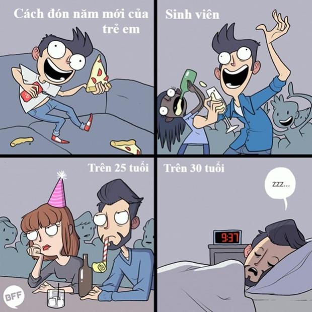 Sự hào hứng mỗi dịp năm mới đến tỷ lệ nghịch với số tuổi của mỗi người. Ảnh: Booksofadam.