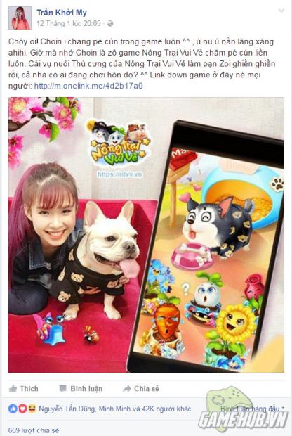 Luôn bận rộn với nhiều dự án, lại hay đi lưu diễn dài ngày, nên phải xa cách chó cưng Choin là điều mà Khởi My khó tránh khỏi. Tuy nhiên, thời gian gần đây, cô nàng đã tìm được một phương án giúp mình thỏa lòng nhung nhớ, đó là chăm sóc “phiên bản Choin mini” của game Nông Trại Vui Vẻ ngay trên điện thoại. Cô nàng cònlập hẳn một nông trại riêng để Choin làm bá chủ. Không chỉ chăm sóc Choin, Khởi My bật mí cô còn là một “nông dân” chính hiệu tronggame.