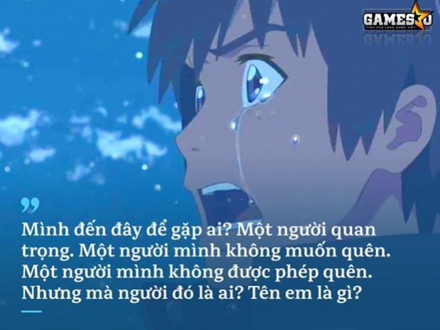Your Name có rất nhiều ưu điểm để trở thành một sản phẩm hút khách, trong đó đáng khen nhất chính là phần lời thoại. Makoto Shinkai thật sự tài tình khi đặt tay viết nên những câu chữ giàu triết lý nhưng lại sử dụng những ngôn từ hết sức dịu dàng, dễ chạm đến cảm xúc của người xem. Bạn có nhận ra những đoạn trích dẫn này không?