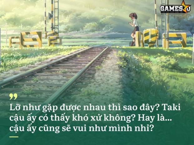 110 phút của Your Name là khoảng thời gian vừa đủ để bạn xem và nếm trải nhiều cảm xúc khác nhau. Chúc bạn xem phim vui vẻ và góp nhặt được những câu thoại mà mình tâm đắc nhất trong Your Name – kiệt tác anime mới của thời đại này.