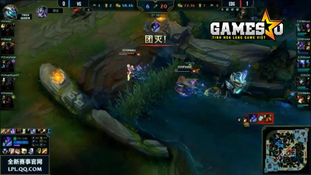 Sự yếu thế nhìn thấy rõ ràng do khả năng đi đường bị hạn chế, và đặc biệt, họ còn phải đối đầu với một xạ thủ mới toanh, người đi đường giữa tới từ ROX Tigers, Zet (từng được biết tới với cái tên Cry). Trong suốt cả trận, Zet không phải nằm xuống bất cứ một lần nào. Và khi kết hợp với meiko, một trong những hỗ trợ tốt nhất của LPL, Zet đã có được hệ số KDA tổng đẹp “như mơ”: 10/0/15 khi lựa chọn Caitlyn và Jhin…