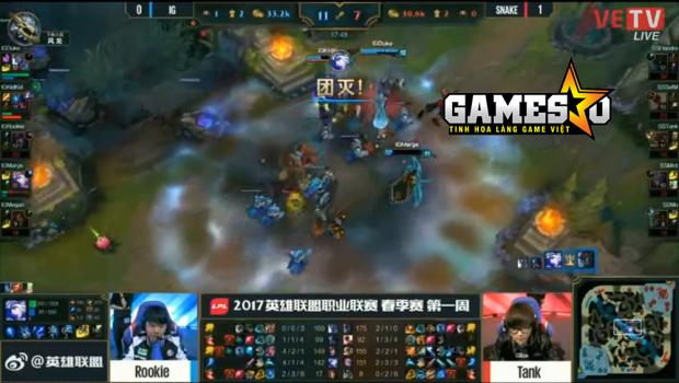 Nhứng sự khôn khéo trong các pha xử lý của Ryze trong tay RooKie đã giúp cho iG lấy lại được thế trận. Anh liên tục có những pha né đòn, luồn lách hợp lý trước sức ép khủng khiếp mà SofM thường xuyên gây lên đường giữa. Thế trận giằng co cho tới phút 37, khi SofM kêu gọi đồng đội ăn thành công Baron và có được hai điểm hạ gục. Với lợi thế rõ ràng, Snake nhanh chóng kết thúc ván đấu đầu tiên sau đó một phút với tỉ số sát nút 11-9.