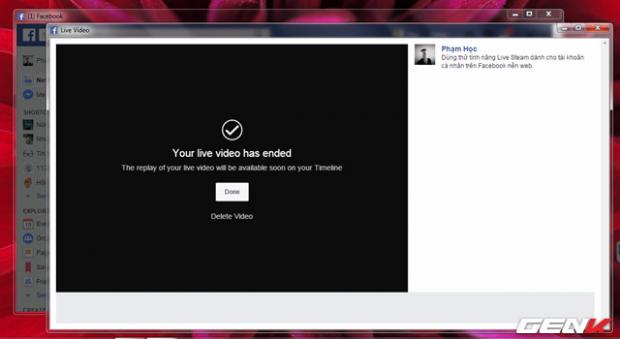 Khi muốn ngưng việc Live Stream lại, bạn hãy nhấp vào “Finish” ở cửa sổ Previews và nhấn “Done” để kết thúc.