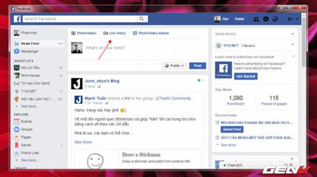 Trong giao diện News Feed, bạn hãy nhấp vào tab “Live Video” ở khung đăng status.