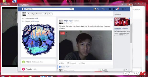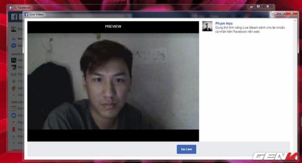 Sau khi được cho phép, bạn sẽ thấy được hình ảnh mà mình đang phát qua webcam. Lúc này hãy “chuẩn bị nghiêm chỉnh” mọi thứ và nhấn “Go Live” để bắt đầu Live Stream.