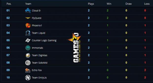 Cloud9 và FlyQuest đã chia nhau vị trí dẫn đầu BXH LCS Bắc Mỹ Mùa Xuân 2017 sau Tuần đấu ra quân.