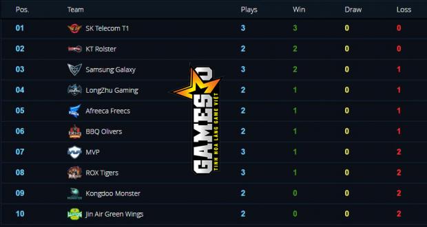Lượt trận đầu tiên của Tuần 2 LCK Mùa Xuân 2017 đã khép lại cách đây ít giờ mà không có bất cứ bất ngờ nào xảy ra. SK Telecom T1 và Samsung Galaxy đồng loạt có được điểm số khi đánh bại các đối thủ tương ứng là ROX Tigers cùng MVP với tỉ số 2-0.