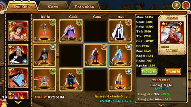 Game bổ sung các tính năng về đội hình dự bị, chiến đấu tổ đội với 1 nền tảng chiến thuật sâu sắc nhờ có hơn 40 tướng lớn nhỏ cùng các skill khác biệt nhau, được sắp xếp theo nhiều loại trận hình và mỗi trận hình lại có 1 lợi thế khác biệt về sức tấn công, phòng thủ hay sát thương đột phá. Chính điều này giúp cho Haki Bá Vương không bao giờ bị nhàm chán bởi những lối chơi lặp đi lặp lại.