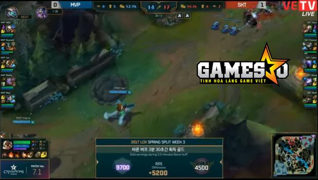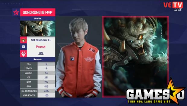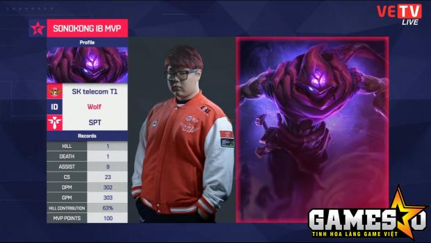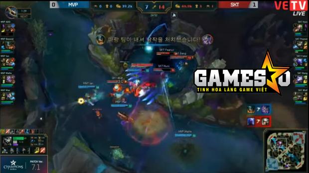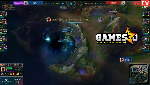 Khả năng kiểm soát bản đồ tuyệt vời của Peanut kết hợp cùng những pha đảo đường gank hợp lý từ Corki trong tay Faker khiến SKT hơn MVP 10.000 Vàng khi bộ đếm giờ điểm sang phút 23. Ngay sau đó một phút, SKT nhấn mạnh cách biệt bằng bùa lợi Baron dễ dàng trước sự bất lực của bốn thành viên bên phía MVP khi mà Maokai vừa phải nằm xuống.