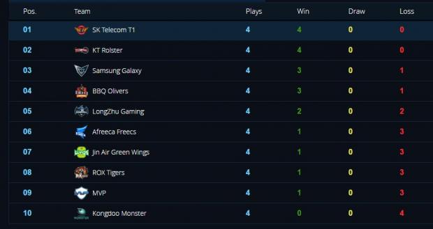 Như vậy, SKT đã toàn thắng cả bốn trận với tám ván đã đấu và đang tạm thời vượt qua KT Rolster và đứng nhất bảng tại LCK Mùa Xuân 2017 do chênh lệch hiệu số thắng thua.