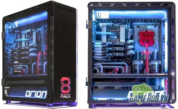Trên thực tế nếu đủ tiền 'cân' bạn sẽ phải bỏ tiền cho 2 chứ không phải 1 chiếc PC. Mang tên mã 8Pack OrionX, bộ máy này bao gồm hay cấu hình riêng biệt được lắp chung một khung máy, hoạt động nhờ bộ nguồn khủng bố Super Flower Leadex 8Pack Edition 2000W. Nhưng đó mới chỉ là bề nổi vì nằm sâu bên trong 8Pack OrionX mới thể hiện độ quái vật của mình.