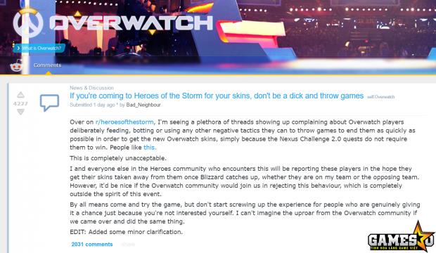 Người chơi Overwatch đang xuất hiện tràn lan trong tựa game Heroes of the Storm để hoàn thành Nexus Challenge, với mục tiêu sở hữu các trang phục miễn phí.