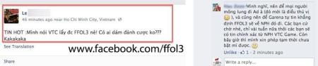 Trên FanpageCộng đồng FIFA Online 3 Việt Namcũng cho đăng tảibức ảnh chụp màn hình về status Facebook của Cựu chủ tịch Liên đoànFIFA Online 2TPHCM. Nguyên văn nội dung status đó là:'TIN HOT: Mình nói VTC lấy được FFOL3 nè! Có ai dám đánh cược ko??? Kakakaka'.Với 1 status mang tính thông báo tự tin như vậy, có vẻ như vị 'tin đồn' nói trên không phải không có căn cứ.