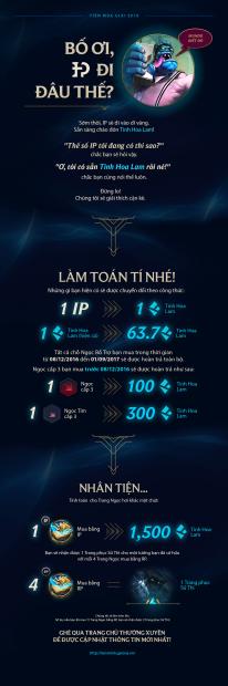 – Với mỗi Ngọc Bổ Trợ cấp 3 mua kể từ khi mùa giải 2017 bắt đầu đến trước khi Ngọc giảm giá còn 10 IP (01/09/2017), bạn sẽ nhận được số Tinh Hoa Lam “mới” bằng số IP đã bỏ ra để mua.