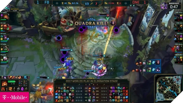 Lịch sử lại lặp lại một lần nữa khi ONE lại nắm được cơ hội Frozen ở đường dưới và lao vào ăn Baron. Tất nhiên, FB lại đến chậm và chỉ hạ được Olaf để đền bù. Sau đó là một chuỗi những pha bắt lẻ hổ báo của ONE nhưng họ không thành công cho lắm và chỉ phá được trụ nhà lính đường giữa của FB. Thế trận lúc này vẫn cân bằng. ONE vẫn là bên chủ động phá vỡ sự giằng co nhưng FB không để yên nữa, họ đã lật kèo hai lần và hạ gục được đường trên cùng rừng của ONE. FB nhẹ nhàng ăn con Baron thứ hai và trong khi đó Twitch của Padden đã đạt ngưỡng sức mạnh. Trái lại, Senjuani cùng Olaf cứ rơi dần và không thể ngăn chặn nổi đối thủ nữa. Kết quả là FB dễ dàng kết thúc trận đấu với lợi thế sức mạnh từ đội hình của mình. Còn Padden thì suýt trở thành tuyển thủ đầu tiên có hai pha Penta tại giải CKTG.
