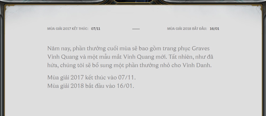 Phần thưởng Xếp Hạng mùa giải 2017: Những thông tin ban đầu