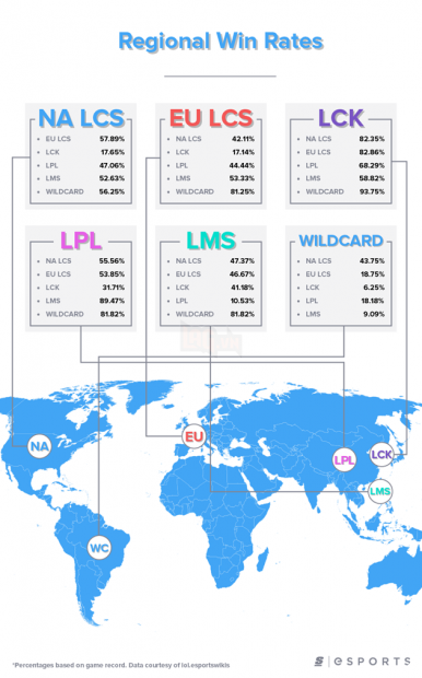 Có thể thấy rằng nếu không tính Wildcard thì LMS chính là khu vực yếu thế nhất khi có tỉ lệ thắng dưới 50% với các khu vực khác. Với thành tích cực kỳ tồi tệ tại Khu vực Đại chiến và CKTG 2017, có lẽ LMS đang dần tiến lại gần GPL hơn bao giờ hết.