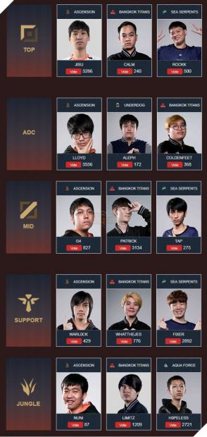 Có thể thấy những huyền thoại LMHT từng giúp BKT của Thái Lan góp mặt tại CKTG mùa 5 không còn sở hữu số lượt bình chọn áp đảo như trước. Đội hình tạm thời dựa trên số lượt bình chọn sẽ là : Jisu (Đường trên), Hopeless (Đi rừng), Patrick (Đường giữa), Lloyd (Xạ thủ) và Fixer (Hỗ trợ). Nhìn qua về lượt bình chọn, có thể thấy rằng Liên Minh Huyền Thoại Việt Nam đang phát triển nhất khu vực GPL với những lượt vote vô cùng áp đảo. Giải đấu All-Star 2017 sẽ bao gồm 8 đội tuyển đại diện cho 8 khu vực có nền LMHT mạnh nhất thế giới hiện nay. Các trận đấu của All-Star 2017 sẽ được diễn ra tại Los Angeles, Hoa Kỳ bắt đầu từ ngày 7/12/2017. Theo GameK