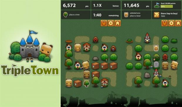 Triple Town có đồ họa đơn giản, nhẹ nhàng, theo phong cách ghép các hình giống nhau để ghi điểm. Trong đó, bạn có thể ghép các ô cỏ để tạo thành bụi cây, ghép các bụi cây để tạo thành cây lớn... tương tự như vậy cho đến khi bạn xây dựng được cả thành phố.