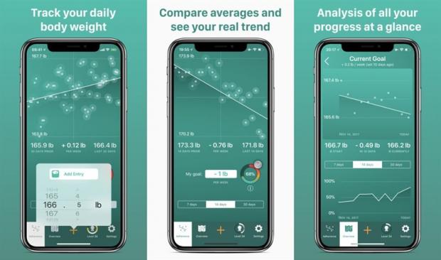 Scelta là ứng dụng theo dõi cân nặng của bạn. Trái ngược với các ứng dụng khác, Scelta so sánh trọng lương trung bình hàng tuần và cho thấy sự cải thiện về trọng lượng thực tế của bạn.