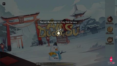 Sau khi cài đặt xong Âm Dương Sư, game thủ Việt sẽ nhận được thông báo: “Server đang bảo trì, hãy thử lại sau’ (Lúc 11h trưa nay)