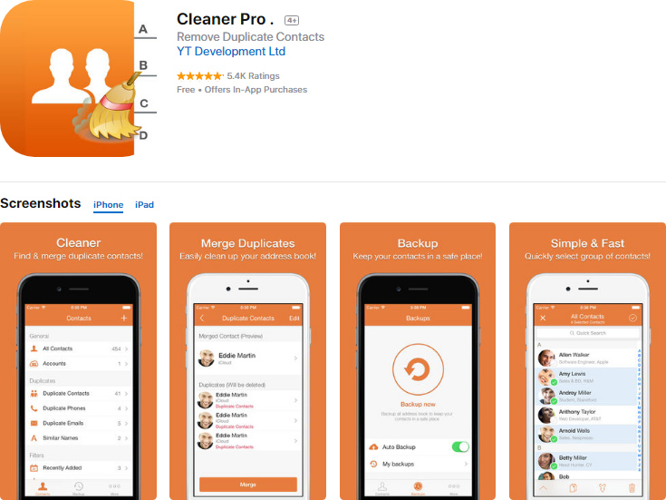Ứng dụng trang bị nhiều tính năng hữu ích đối với danh bạ trên iPhone của bạn. Với các tính năng: tìm và gộp các danh bạ trùng nhau, xóa các địa chỉ liên lạc chưa có tên hoặc số điện thoại, sao lưu danh bạ, tìm kiếm danh bạ.