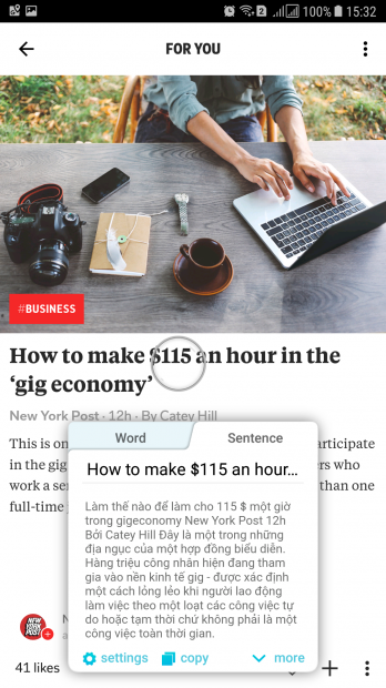 Thao tác với app rất nhanh và đơn giản. Không chỉ ứng dụng tốt cho chơi game, Bubble Dictionary còn thích hợp với mọi tình huống cần tra từ trực tiếp: đọc báo, ebook, ảnh, kindle, pdf: